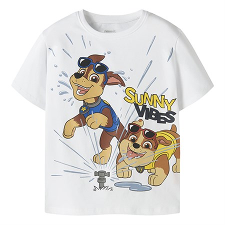 Opdater dit barns garderobe med denne seje og komfortable hvide T-shirt fra Name It med Paw Patrol motiv.