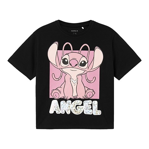 Kortærmet t-shirt med Stitch folie- og gummiprint forsiden. T-shirten er lavet i jersey, som er et let og strækbart stof med en blød overflade og inderside, så den er behagelig at have på og giver god bevægelsesfrihed. Normal pasform. Disneys' Stitch er en ballademager med et stort hjerte, der viser os betydningen af familie og venskab, og at det er ok at være anderledes.