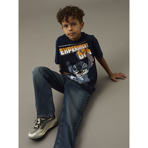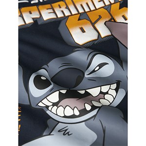 Kortærmet t-shirt med Stitch print på forsiden. Jersey er et let og strækbart stof med en blød overflade og inderside, så den er behagelig at have på og giver god bevægelsesfrihed. Disneys Stitch er en ballademager med et stort hjerte, der viser os betydningen af familie og venskab, og at det er okay at være anderledes. Normal pasform