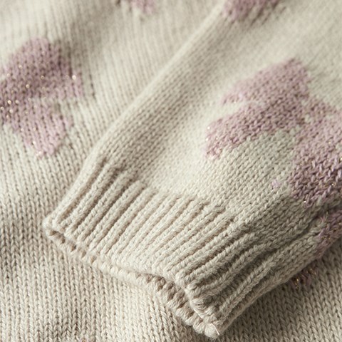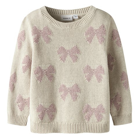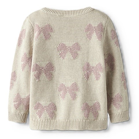 Flot strikpullover i økologisk bomuld med sløjfemønster og glitterdetaljer. Normal pasform.