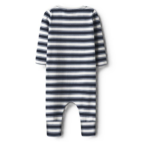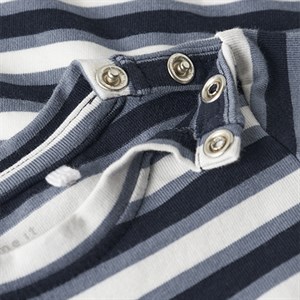 Stribet natdragt i økologisk bomuld med trykknaplukning. Natdragten er fremstillet i jersey, som er et let og elastisk stof med en blød overflade og inderside, så den er behagelig at have på og giver god bevægelsesfrihed.