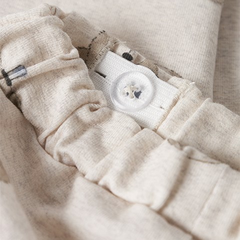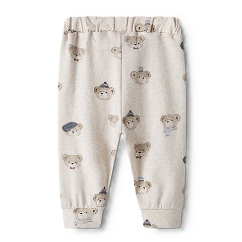 Bukser i økologisk bomuld med sødt bamseprint. Bukserne, som kan justeret i taljen, er fremstillet i jersey, som er et let og strækbart stof med en blød oveflade og inderside, så de er behagelige at have på og giver god bevægelsesfrihed.