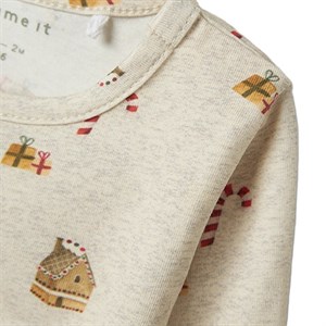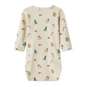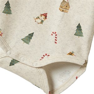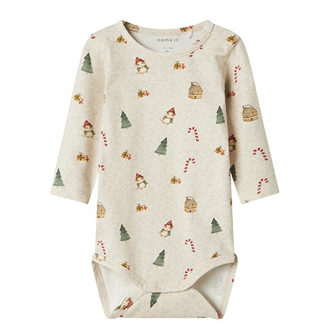 Langærmet unisex body i økologisk bomuld med hyggeligt juleprint. Bodyen, som har trykknaplukning, er fremstillet i jersey, som er et let og strækbart stof med en blød overflade og inderside, så den er behagelig at have på og giver god bevægelsesfrihed.
