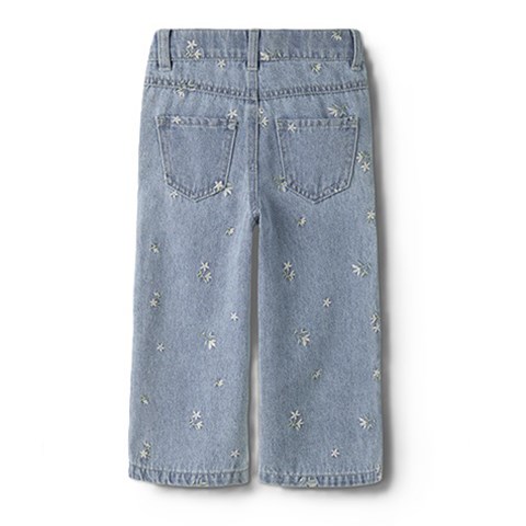 Name It - Rose Wide Jeans 3614ZA White Flower Emb., Light Blue Denim