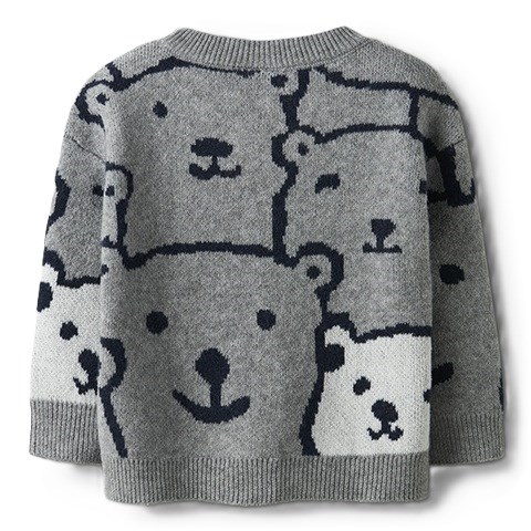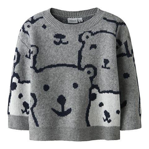 Blød strikpullover med søde bamsemotiver og ribkanter. Løs pasform.