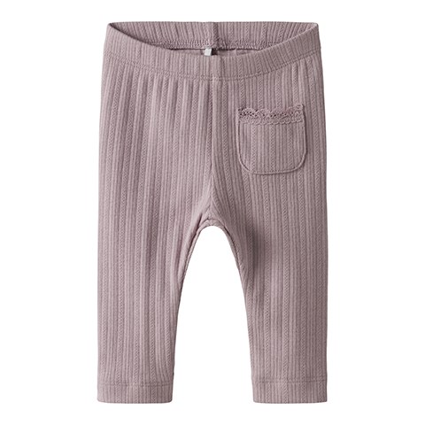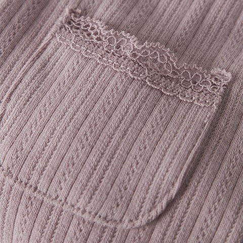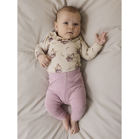 Bløde leggings i økologisk bomuld med forlomme,  blondedetaljer og elastik i taljen. Normal pasform.