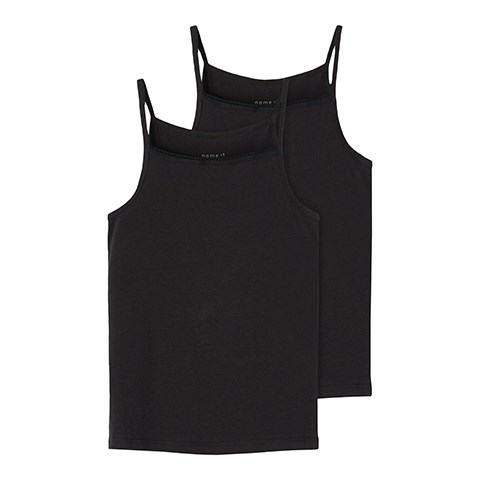 2 fine Camisole-toppe med blonde detalje ved halsudskæring. Sørg for, at dit barn har en blød og behagelig basisgarderobe med undertøj, der giver bevægelsesfrihed. Jersey er et let og strækbart stof med en blød overflade og et inderside, der giver en behagelig følelse og bevægelsesfrihed.