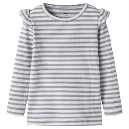 Name It - Taias Slim Top LS, Lavender Gray/Cloud Dancer