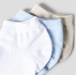 Opdater basisgarderoben med NKMVALDE 3P FOOTIE, et praktisk 3-pak sæt med bløde og komfortable footies. Sokkerne er fremstillet i en behagelig kvalitet med høj andel af økologisk bomuld, som føles blød mod huden og giver god komfort hele dagen.