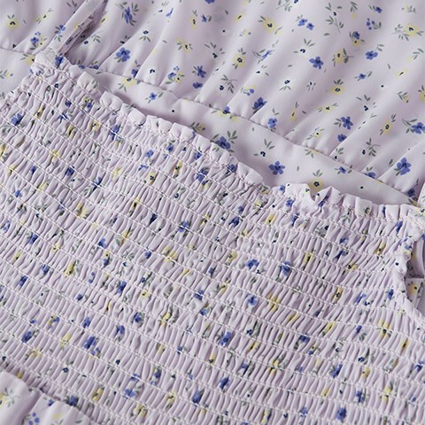Sød og let stropkjole med fint blomster print. Kjolen har justerbare stropper og rynkede elastiske sømme henover brystet (smock).