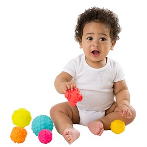 Bløde sansebolde i meget flotte farver med forskellige strukturer. Babyen kan udforske boldene med hænder og munden, som opfordrer babyen til at udvikle sanserne. Alletiders gave til babyen.