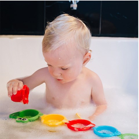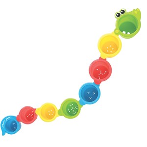 Hvis du ser en krokodille i dit badekar - Fine farverige stabelkopper, der stimulerer barnets finmotorik, når de stables, sættes på række eller puttes ind i hinanden. Stabelkopperne er også gode at tage med i badekarret eller sandkassen. De små huller giver vandet eller sandet mulighed for at løbe ud af bunden af kopperne. Alletiders gave til babyen.