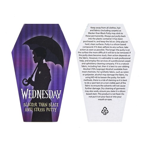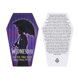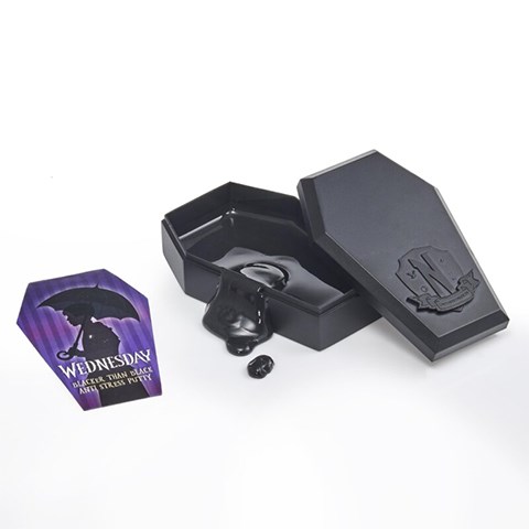 Det sorteste putty, der nogensinde har eksisteret. Det er hvad dette beroligende putty er - inspireret af Wednesday og sortere end sort! Klem, stræk, knug og ælt dig gennem dagen! Kommer i en stiliseret kisteemballage.