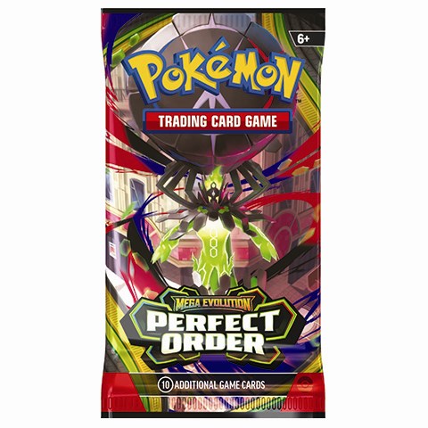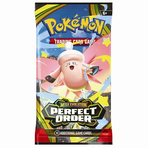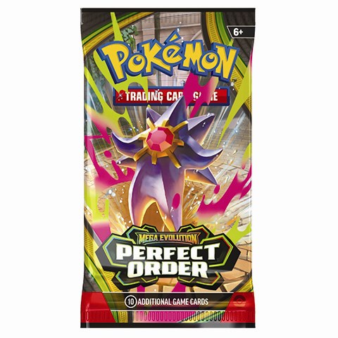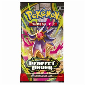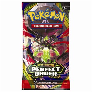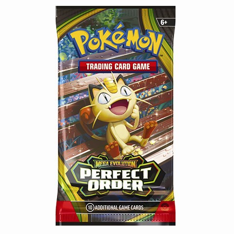 Hver pakke indeholder 10 samlekort fra den populære Perfect Order-udvidelse, hvor den legendariske Mega Zygarde ex beskytter balancen i byen. Samtidig kan du være heldig at finde stærke og eftertragtede kort som Mega Clefable ex, Mega Starmie ex og Meowth ex.