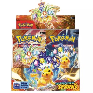 Terawatt af elektricitet styrter ned fra himlen i et tropisk paradis og sætter scenen for den superladede Pikachu ex! Med kraften fra en Stellar Tera Pokémon ex lyser den kystlinjen op og afslører en parade af drage-Pokémon anført af den tårnhøje Alolan Exeggutor ex! Archaludon ex og Latias ex fuldender horden, mens nye ACE SPEC-kort og flere nye Pokémon ex bringer deres egne overraskelser. Strømme knitrer, og drager brøler i Pokémon TCG: Scarlet & Violet—Surging Sparks-udvidelsen!