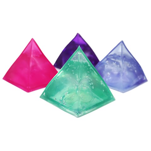 Pyramiden er fyldt med en langsomt bevægende, slikagtig gelé, som gør den ekstra sjov at klemme, strække og nulre. Den bløde og fleksible konsistens giver en beroligende effekt og gør den ideel til både leg, fokus og små pauser i hverdagen.