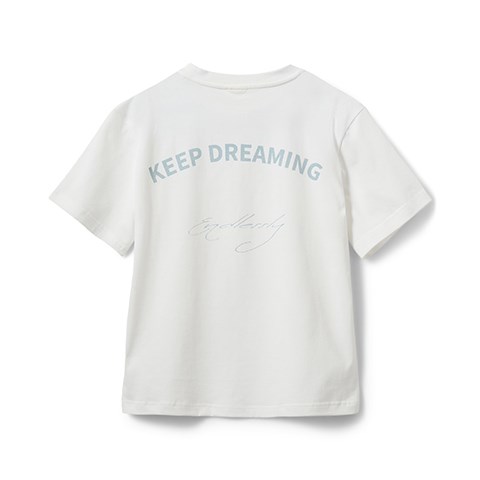 T-shirten har korte ærmer og rund hals med 1x1 rib, som sikrer en komfortabel pasform og holdbar finish. Et diskret lille print på brystet og et større statement-print på ryggen giver T-shirten et trendy, markant udtryk, typisk for Sofie Schnoor Youngs design.