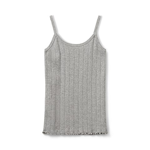 Toppen er designet i blødt, økologisk bomuld med et elegant pointelle-mønster, som giver et let og luftigt udtryk. De smalle stropper skaber et feminint og minimalistisk design, der passer til mange forskellige outfits.