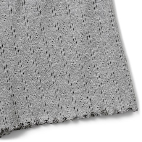 Shortsene er fremstillet i blødt, økologisk bomuld med et fint pointelle-mønster, som giver et let og luftigt udtryk. Den elastiske talje sikrer en komfortabel og justerbar pasform, der gør dem nemme at bevæge sig i.