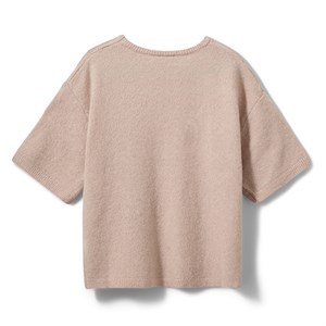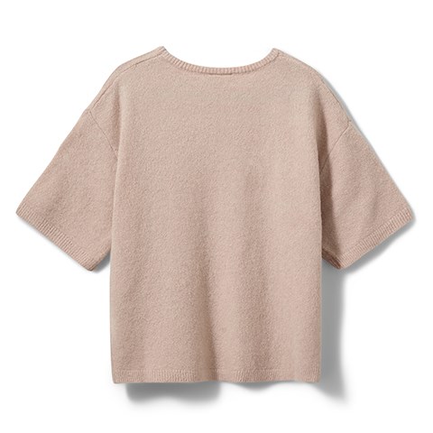 Fin strikbluse i sart rosa med ribkanter ved hals, ærmer og bund. Blusen er i oversize fit og har halvlange ærmer.