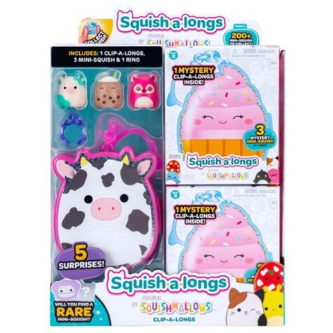 Squish-a-longs giver dig en ny måde at squishe på og sjove og uventede måder at vise dine samlinger og tage dem med på farten på. De er lavet i blødt og squishy PVC, som er krammevenligt og holdbart. Dette nøgleringsetui indeholder 3 Squishmallows 2,5 cm, men kan rumme op til 8. Det findes i 12 varianter, så der i alt er 36 figurer at samle på. Inkluderer:. - 3 Squishmallows 2,5 cm - 1 nøgleringsetui - 1 nøglering - 1 samlerguide. Hvis du ønsker en bestemt variant, kan du skrive det i kommentarfeltet. Hvis vi ikke kan imødekomme dit ønske, vil vi kontakte dig.