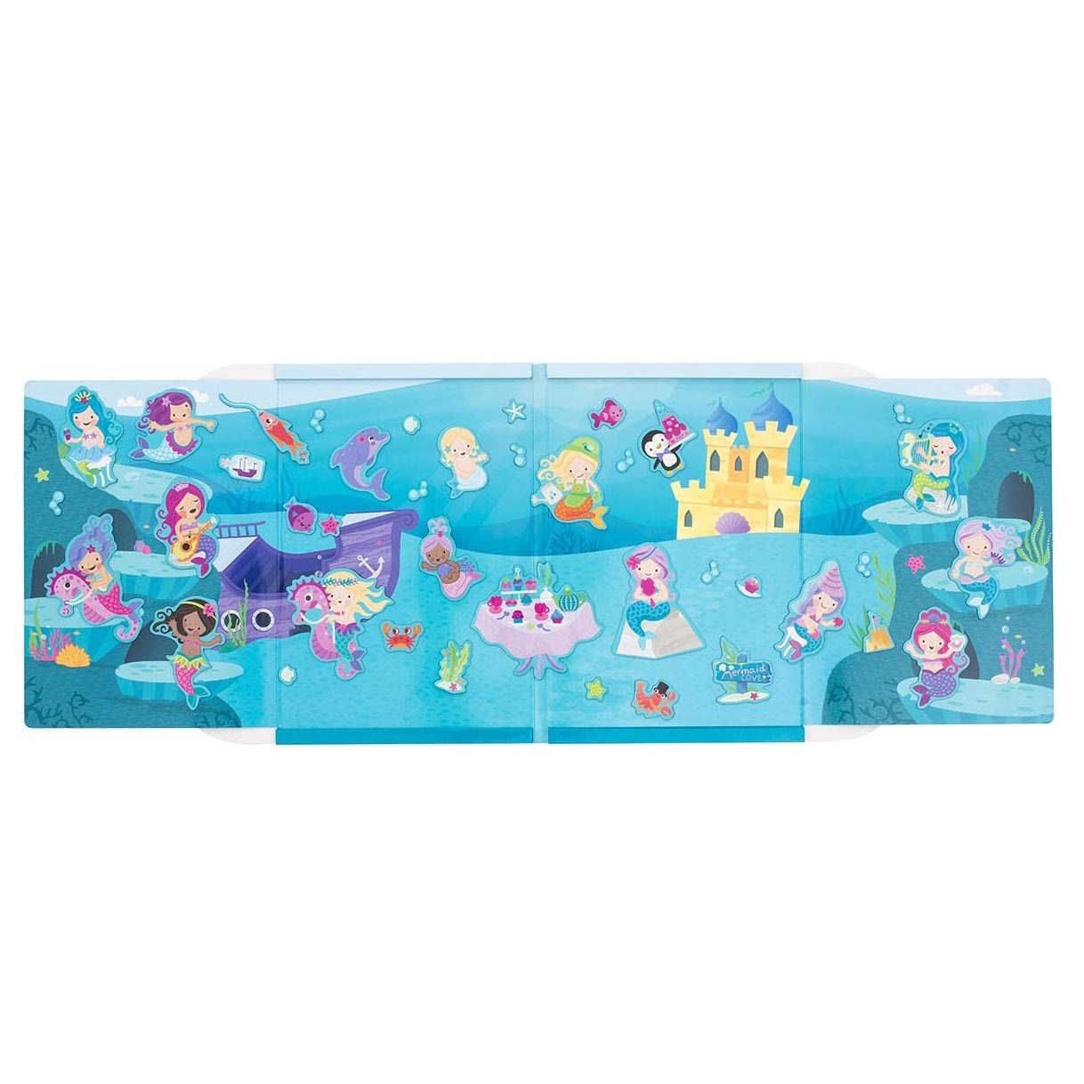 Magnetbog fra australske Tiger Tribe, som forestiller et fantastisk undervandsparadis.  Fold magnetbogen ud, og du vil møde smukke havfruer og havdyr. Denne magnetbog er med til at træne og udvikle barnets fantasi samt finmotoriske evner, når barnet flytter rundt på figurerne, og laver små eventyr. Magnetbogen er let at have med på tur og ferie.