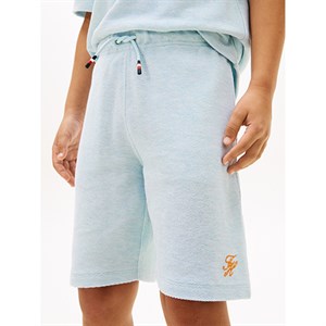 Shortsene er fremstillet i 100% regenerativ bomuld i en blød jersey twill kvalitet, der giver et sporty look med en let struktureret finish. Det broderede script logo på benet og det ikoniske flag bagpå fuldender det klassiske Tommy Hilfiger udtryk.