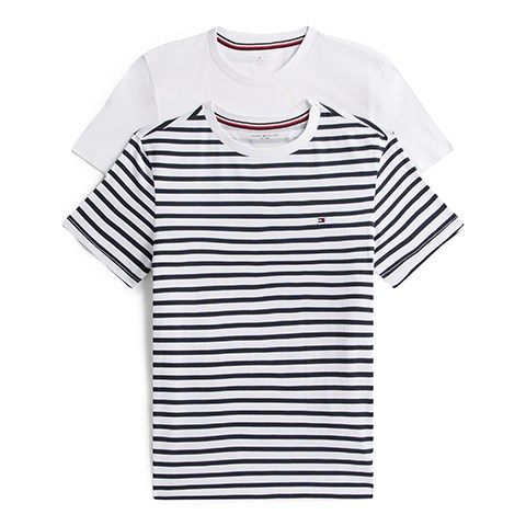 Tommy Hilfiger - 2 Pak CN T-shirt Print SS, Desert Sky Breton / White