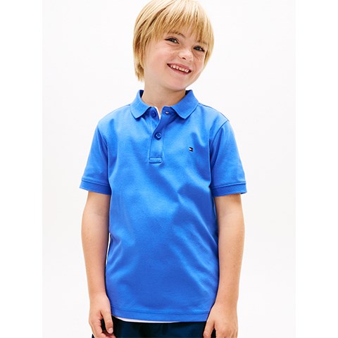 Denne poloshirt i ren bomuld med interlock-strikket snit er et smart valg til familiebegivenheder med en klassisk kravehalsudskæring og flagbroderi. Poloen har stolpelukning med to knapper foran, signaturbånd inde i halsudskæring og forneden samt et lille Tommy Hilfiger-flagbroderi på brystet. Normal pasform.