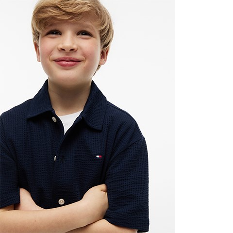 Denne kortærmede skjorte er et must-have til ferien, lavet af bomuldsjersey med en luftig seersucker-tekstur og en rummelig og afslappet pasform. Skjorten har signaturbånd inde i halsudskæringen, Tommy Hilfiger-branding og lille Tommy Hilfiger-flagbroderi på brystet. Afslappet pasform.