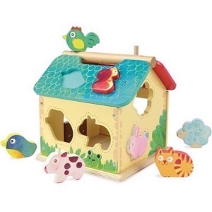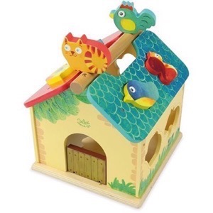 Skøn bondegårds puttekasse i moderne farver med skønne illustrationer af dyr, som skaber glæde og udfordrer det lille barn. Barnet vil blive stimuleret, få styrket sin øje- og håndkoordination, udvikle sin finmotorik og logiske sans. Mor og far vil opleve glæden ved trælegetøj i god kvalitet.