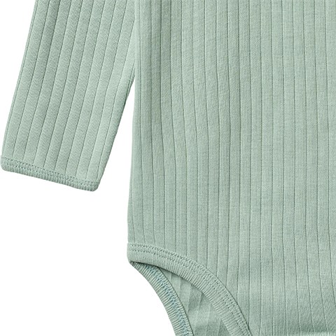 Langærmet ribbody i blød økologisk bomuld til babyer. Bodyen har trykknapper på skulder og i skridt. Pasformen er slimfit.