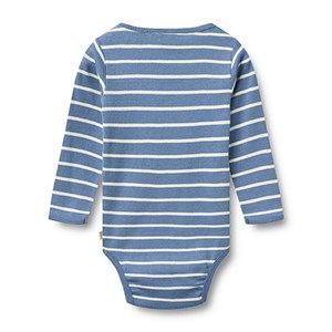 Langærmet stribet body i blød økologisk bomuld til babyer. Bodyen har trykknapper på skulder og i skridt.