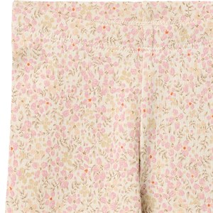Bløde jersey leggings i økologisk bomuld. Bukserne har fint blomsterprint og elastik i taljen.
