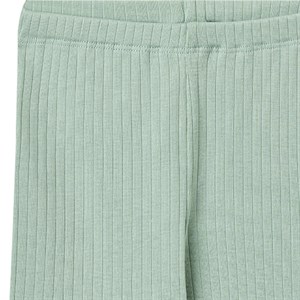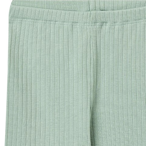 Behagelige bløde rib jersey leggings i økologisk bomuld til babyer. De har elastik i taljen, og er tætsiddende.