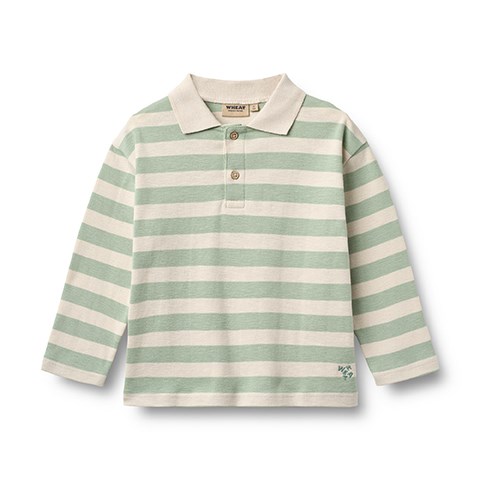 Wheat - Polo Shirt Fred LS, Mint Stripe